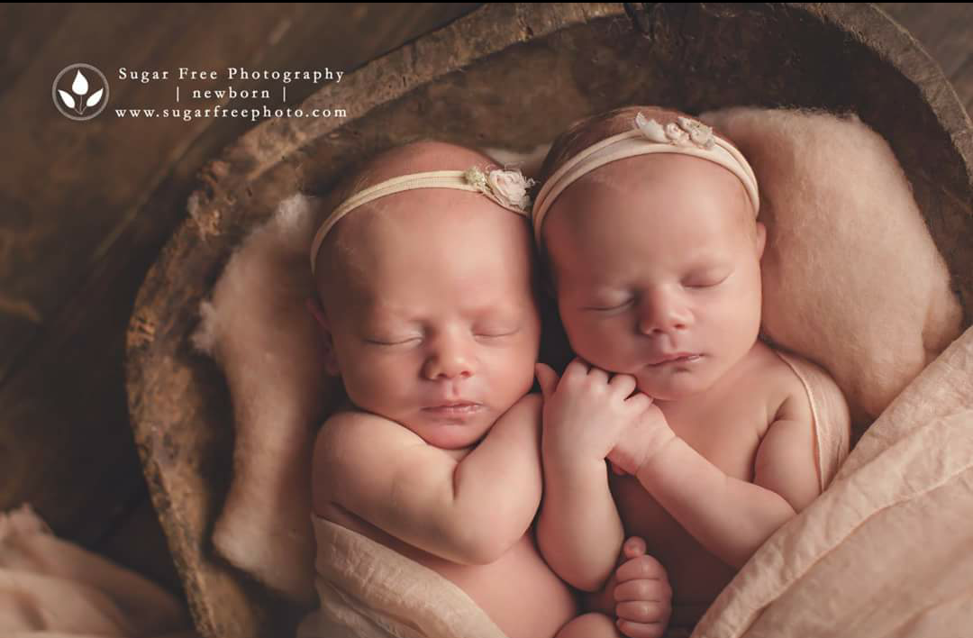 We did a newborn photo shoot for the girls. The photographer posted one of the pictures on her Facebook page. I love this picture of the girls, so close together and loving on one another. Charlotte is on the left, Michelle is on the right. Michelle is the one who is always reaching over to Charlotte and holding on to her. Michelle is baby b, the gymnastic.
